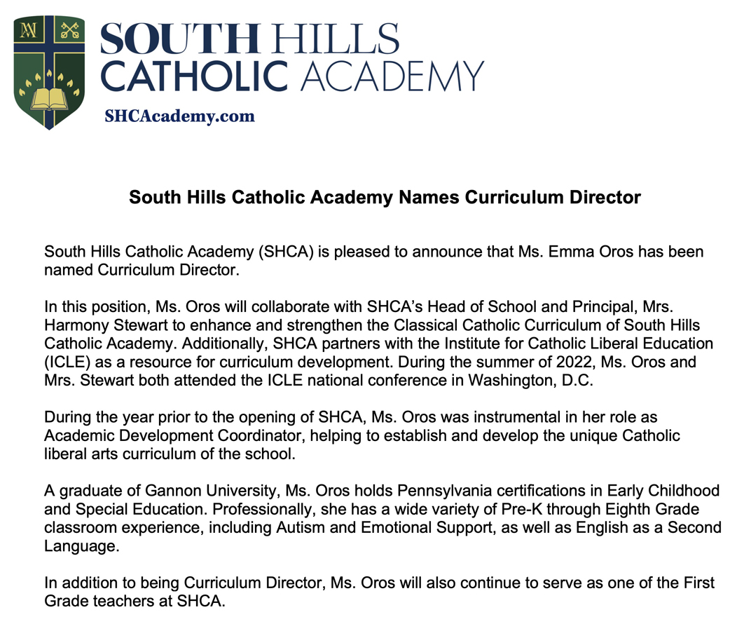 About Us South Hills Catholic Academy